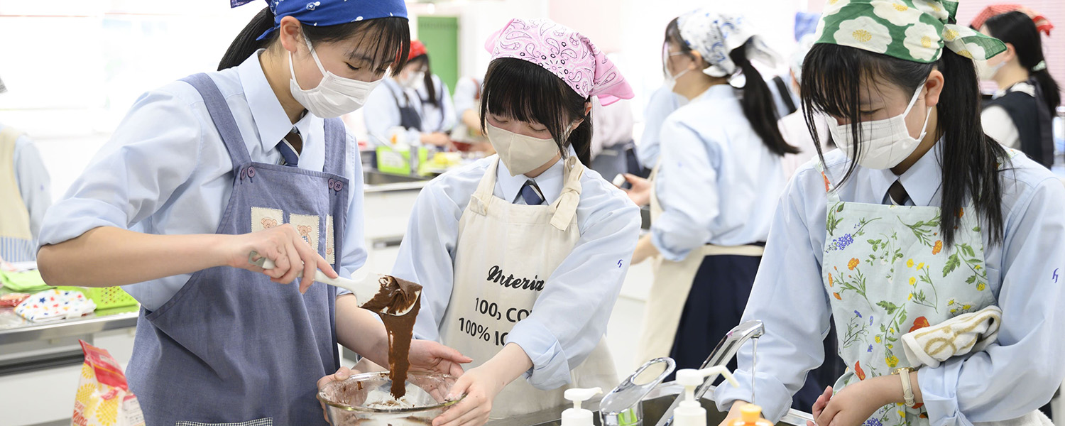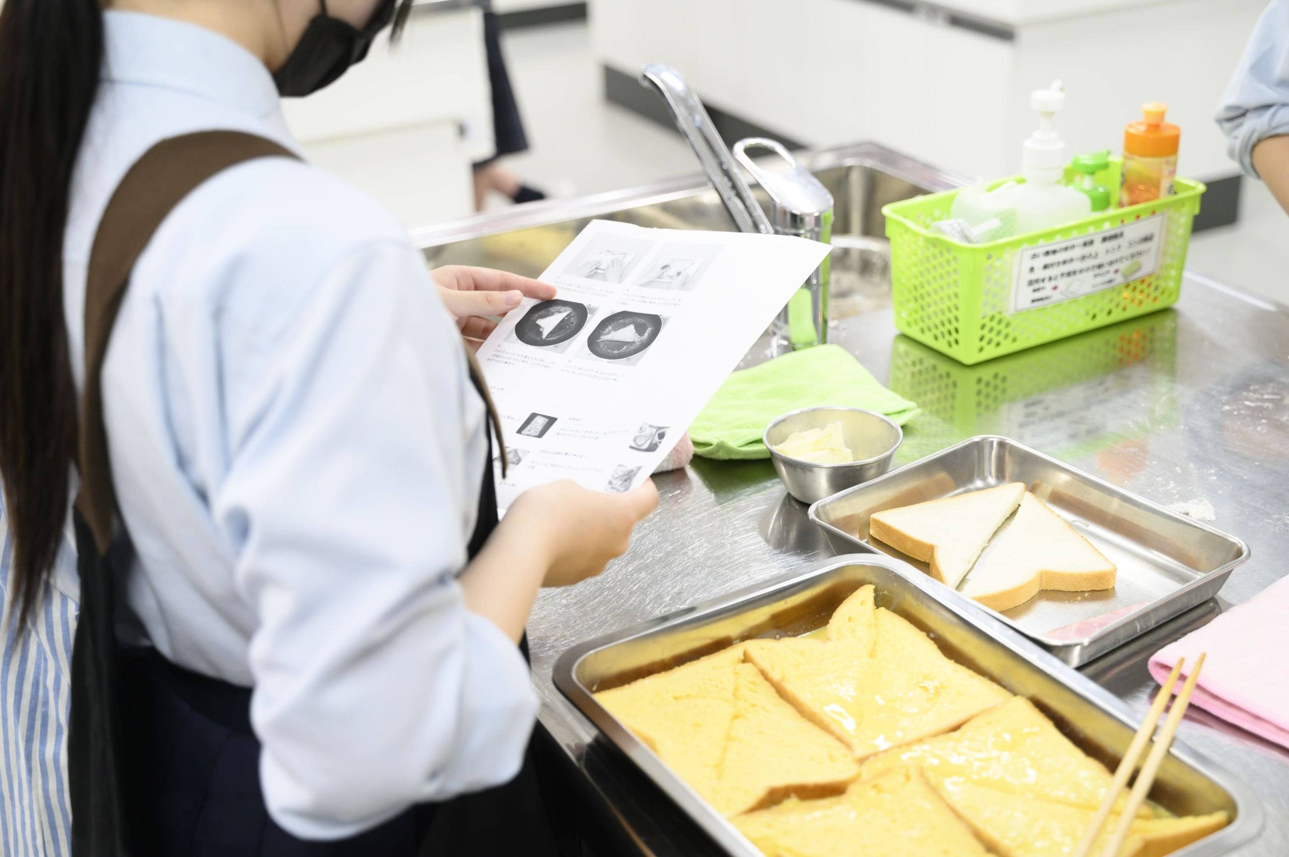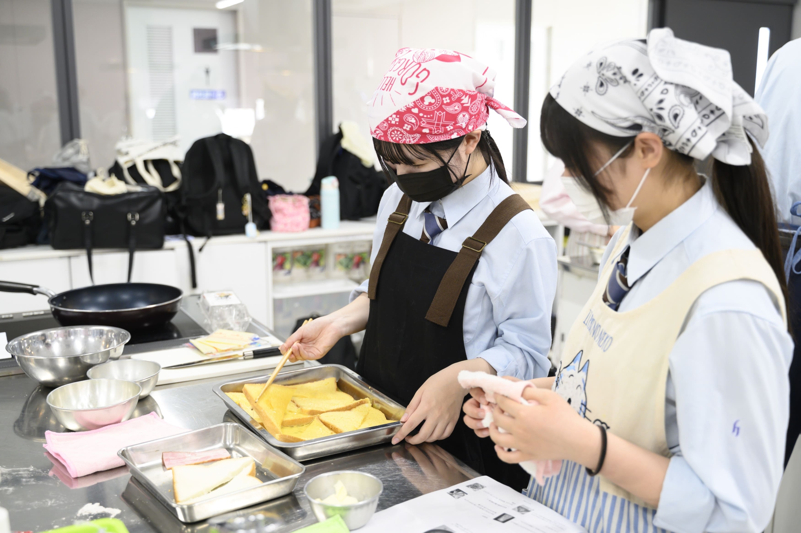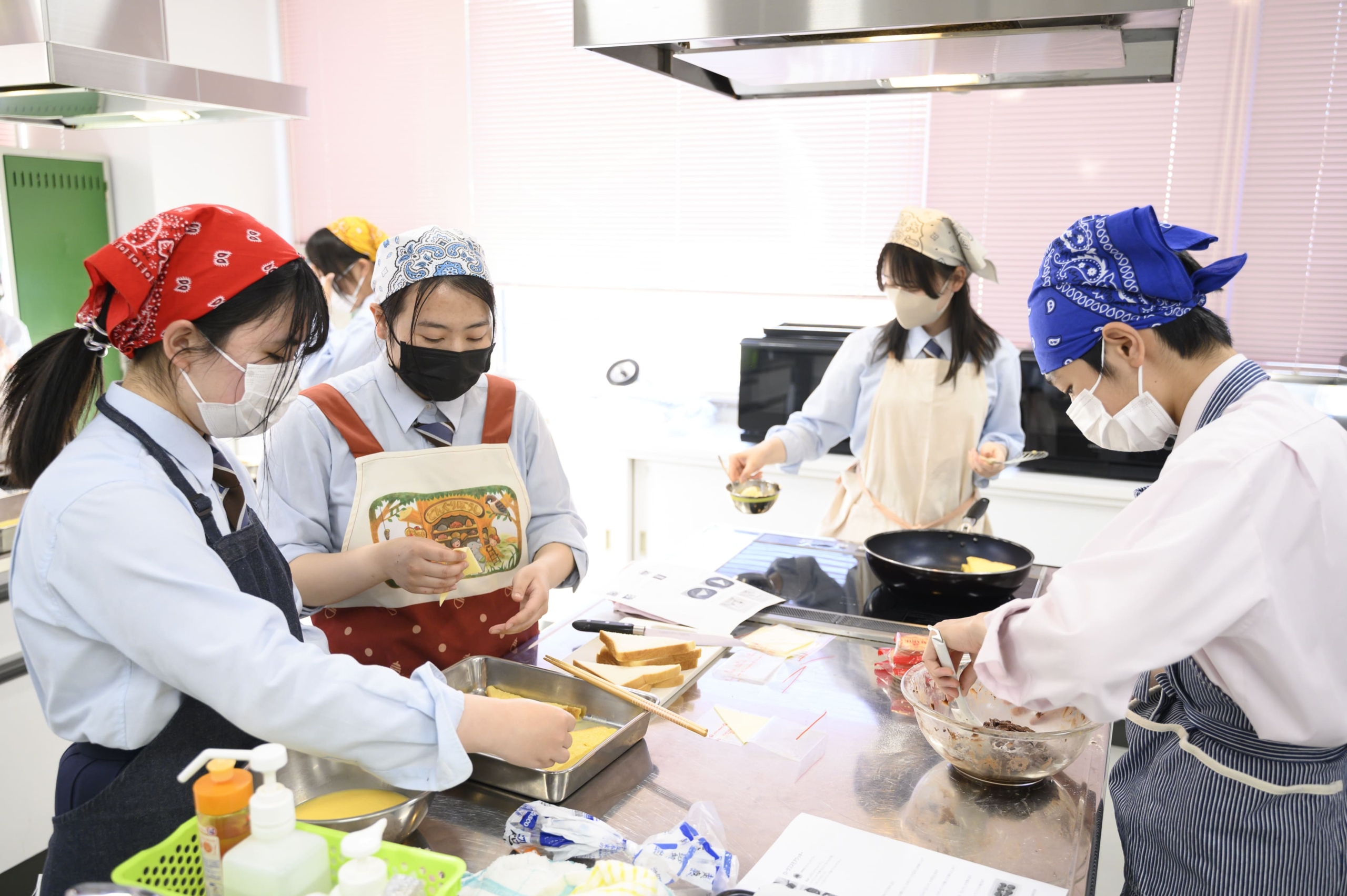 調理では水曜日に班ごとに考えたレシピで買い出しをしてから木曜日に全員で調理を行います。被服では2学期の文化祭に向けて、展示品の作成をします。