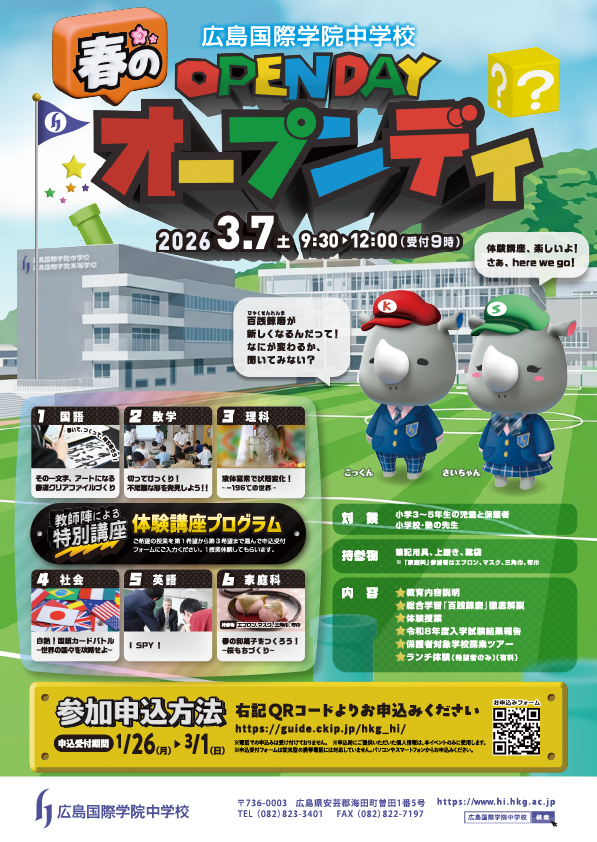 2026年度中学校入試、最初のイベントである「春のOEPN DAY2026」の申し込み受付を開始しました。