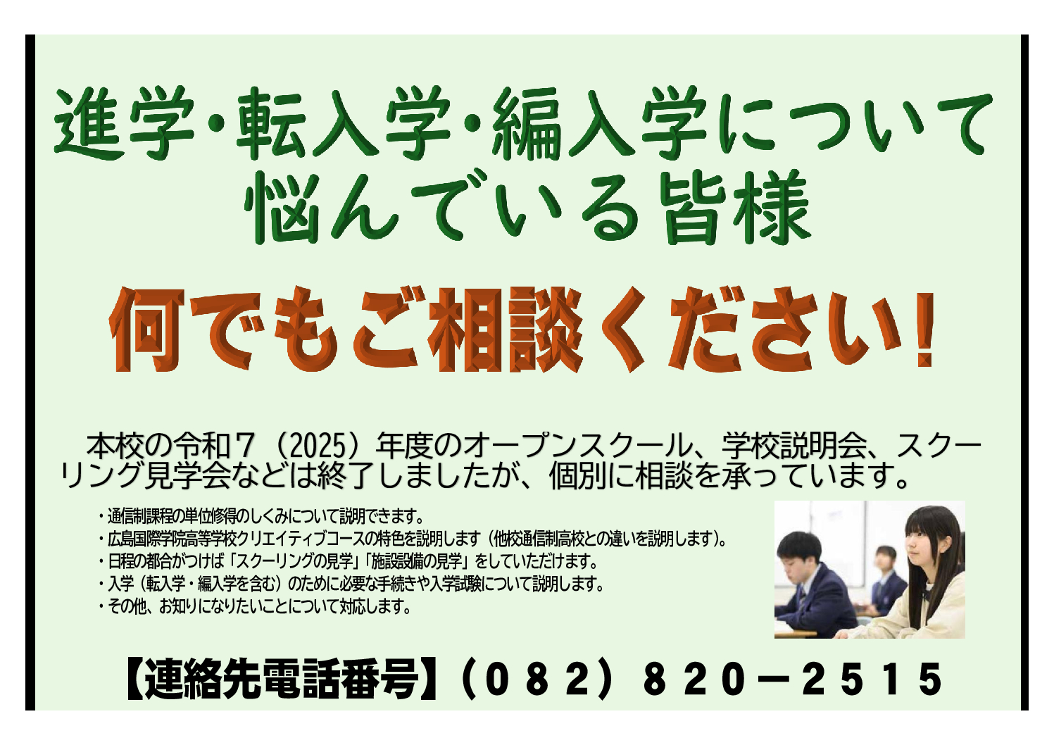 進学、転入学、編入学で悩まれている方へ