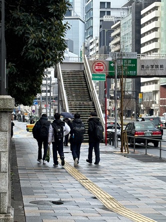 本日最初は「青山学院大学訪問」。季節的に少し寂しい木々であったこと、工事中の施設が結構あったことがもったいなかったですが、高層の各号館や都市部にある大学に圧倒されていました。多くの受験生が集う理由を肌で感じたように思います。