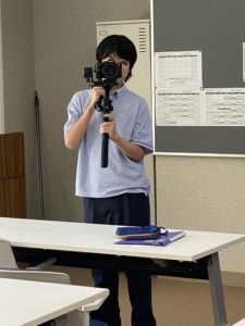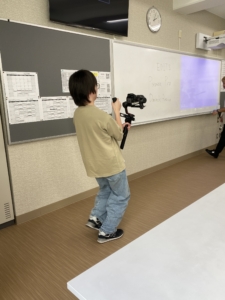 講座の後半では,プロの撮影現場で使用される機材にも触れる機会がありました。ジンバル(スタビライザー)を使って,どのように手ブレを抑えて滑らかな映像が撮れるのかを実際に体験。撮影の難しさと面白さを体感しました。