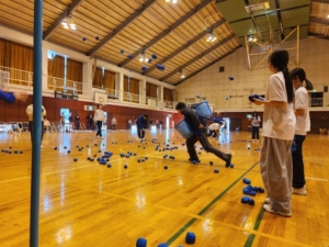 プチ体育祭のような形式で,玉入れ・綱引き・フリスビーストラックアウトなど,さまざまな競技を行いました。どの競技も飛び込み参加や保護者の方の参加が可能で,順位や勝敗にこだわらず,誰もが楽しめる内容となっていました。