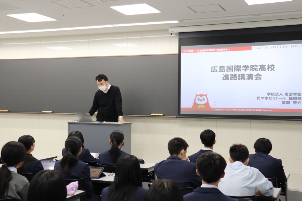 研修初日は、まず代々木ゼミナール本部タワーを訪問。ここでは、職員の方より、進路目標の決定の重要性と、それに向けた勉強方法について講演をいただきました。生徒たちは、難関大学合格に向けた学習の見通しを立て、規則正しい学習習慣が必要であると感じました。