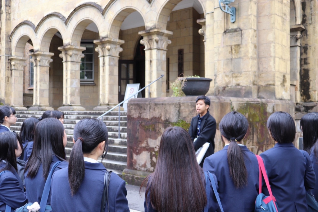 現役の学生によるガイドツアーに参加し、歴史あるキャンパスの雰囲気を感じながら、学生生活や研究環境をより身近に感じることができました。