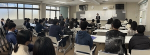 当日は教室を埋め尽くすほど多くの生徒が参加し,落ち着いた雰囲気の中で式が進行しました。