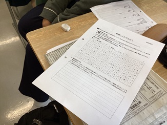 上手く書ける生徒もいれば、200字、10分という縛りがある中で、記事とプリントと向き合いながら苦労していた姿がありました。