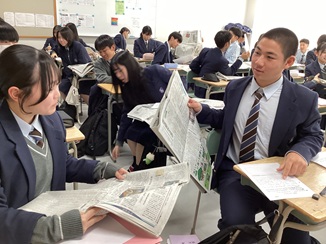 前回のレポートで紹介した「新聞に慣れ親しむ活動」ですが、各クラスとも新聞を介して、予想上に楽しく、充実した交流を行うことができているようです。