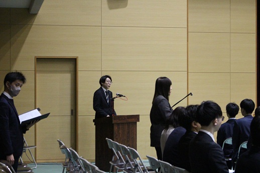 入会式では、同窓会長より卒業生に向けてはなむけの言葉が送られました。