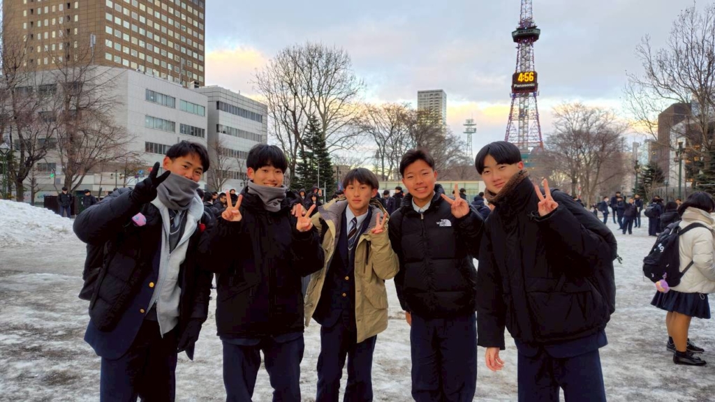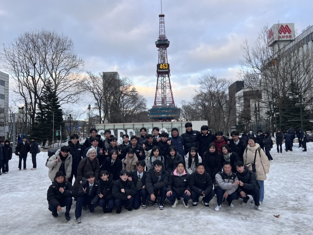 真夏の日差しが照り付けた沖縄と異なり、北海道は…雪景色。まだまだ真冬の天候の中で生徒たちは4泊5日を過ごします。