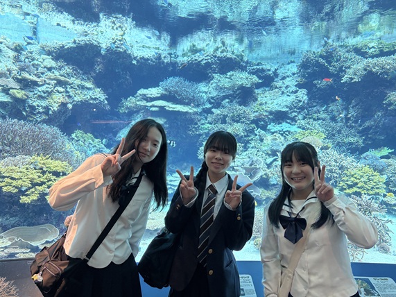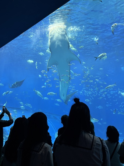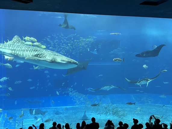 まずは美ら海水族館を訪れました。亜熱帯の海に生息するカラフルな魚や珊瑚がたくさん展示されていました。