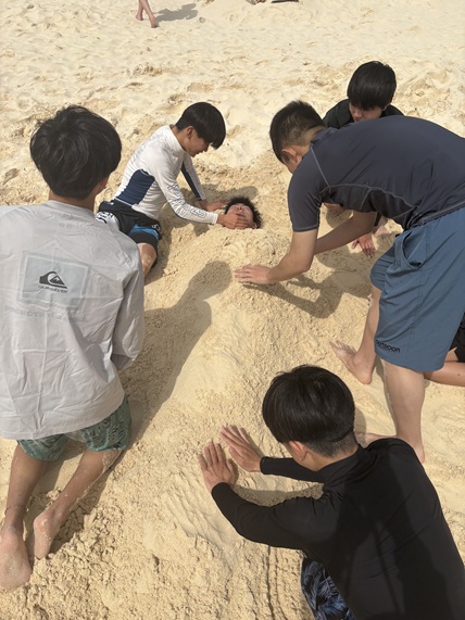 生徒たちが砂浜で遊ぶ姿を見ていると、3月であることをすっかり忘れてしまいました。 充実した一日となり、疲れも見られましたので、明日の宮古島観光に備えてしっかり休みたいと思います。
