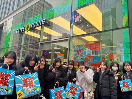 ビューティープレイでは韓国での化粧体験をし、その後オリーブヤングというお店に行き、買い物楽しみました。