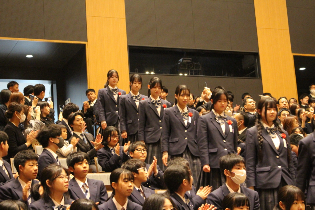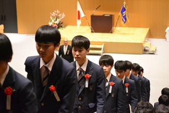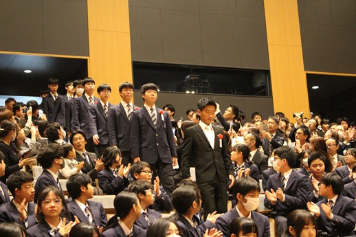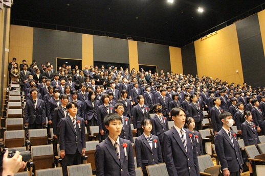 ホールで執り行われた授与式には、卒業生保護者、在校生、教職員が卒業生の門出を見届けました。