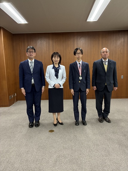 その後、3/23(月) 日本女子数学オリンピックの銀賞で表彰されたこと、そして日本代表としてヨーロッパ女子数学オリンピックに出場することを報告するため、県庁に表敬訪問をしました。横田知事からは日本女子数学オリンピックの結果に対して称賛していただき、また日本代表としてヨーロッパ女子数学オリンピックに参加することに対して激励の言葉をいただきました。