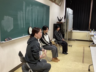 今日の研修では、一貫コースの卒業生で今年の4月から広島大学に通う新城さん、瀬尾さんが来てくれました。